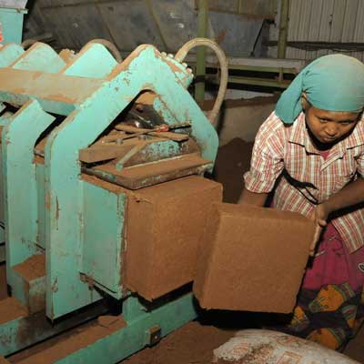 We source fresh, best quality coconuts directly from our farmers. Coconut and husk are separated and sent for processing. The cocopeat powder thus obtained is sieved, washed, dried and finally compressed into blocks. The blocks can be used for a wide range of planting requirements. Coir is known for its natural rooting hormones and anti-fungal properties. We also ensure secure packaging of the cocopeat blocks. The blocks are stretch wrapped and strapped. We make 5kg Cocopeat blocks.